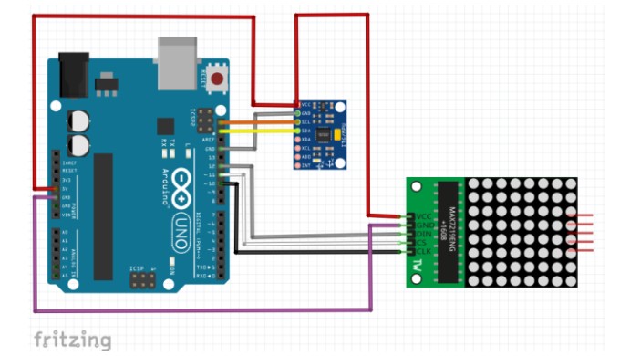 ArduinoにMPU6050とLED-Matrixを接続します