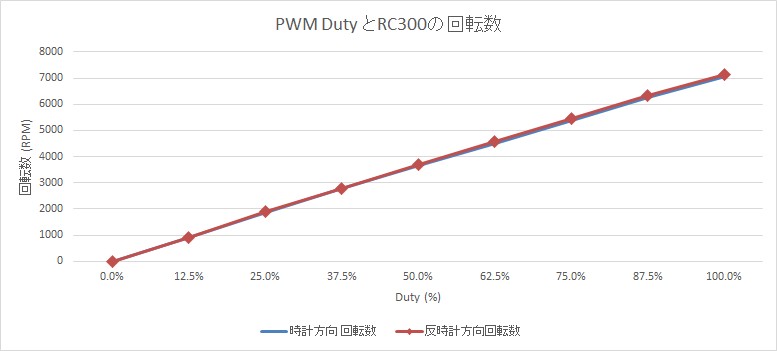 PWM波形のデューティサイクルを変えてDCモータの回転数を測定します。なお、購入したDCモータ RC300 はギヤボックスの部品として付属していたものです。さらに、このギヤボックスは減速比を3種類から選択できます。したがって、モータ単体の回転数が分かれば、実際に使用する際の最適なギヤ比を決める参考にできます。